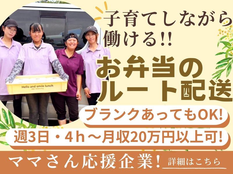 仕事内容 40代~60代の男性、シニア活躍中! 企業へのお弁当配送のお仕事です! 足立区鹿浜の車庫で一度社用車に乗り替え、 担当エリアへの配送に向かいます。 1日あたり20件ほどを担当します。 【50代Mさんの1日(例)】 ▼07:30 お弁当を車に積み込み ▼08:30~12:00 ハイエースで配送! (1日280食以上/1日20件ほど) ▼12:00 配送終了、終了報告、休憩 (お昼は日替わりのお弁当無料♪) ▼13:00 空き箱回収 ▼17:00 お仕事終了! ☕安定収入を目指す方にオススメの企業✊  ̄ ̄ ̄ ̄ ̄ ̄ ̄ ̄ ̄ ̄ ̄ ̄ ̄ ̄ ̄ ̄ ̄ ̄ ̄ ̄ AT免許とやる気があれば始められます!! 頑張り次第で、営業正社員へのキャリアアップも可能✨ 手に職をつけて、安定して稼げます! 週5~6日で安定収入◎月収25万円以上可能! 稼ぎたい金額や働き方は相談ok! 頑張りに応じて給与アップも可能です! ☕働き方の相談できます✊  ̄ ̄ ̄ ̄ ̄ ̄ ̄ ̄ ̄ ̄ ̄ ̄ ̄ 「土日休みで平日だけ」 「稼ぎたいからコース組み合わせ」など、 働き方は無限大!! 勤続年数の長い方も多く、定着率も抜群♪ ハローランチは頑張る方を応援します✨