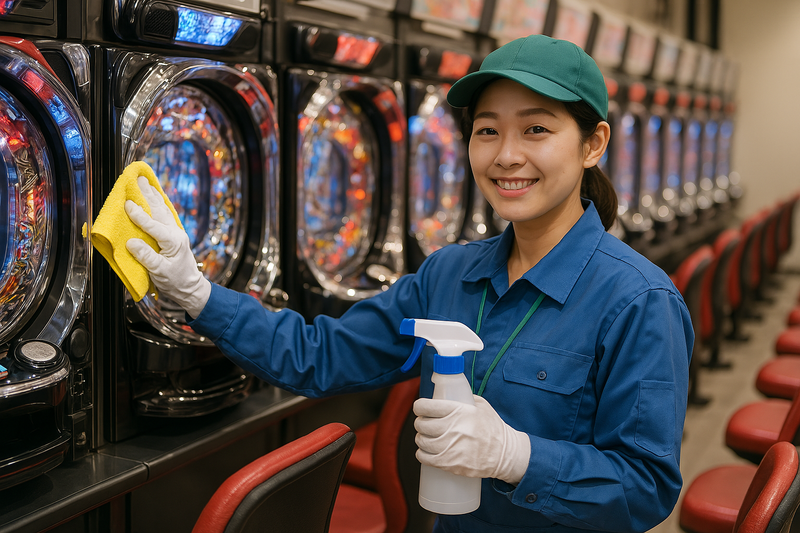 閉店後のパチンコ店内清掃