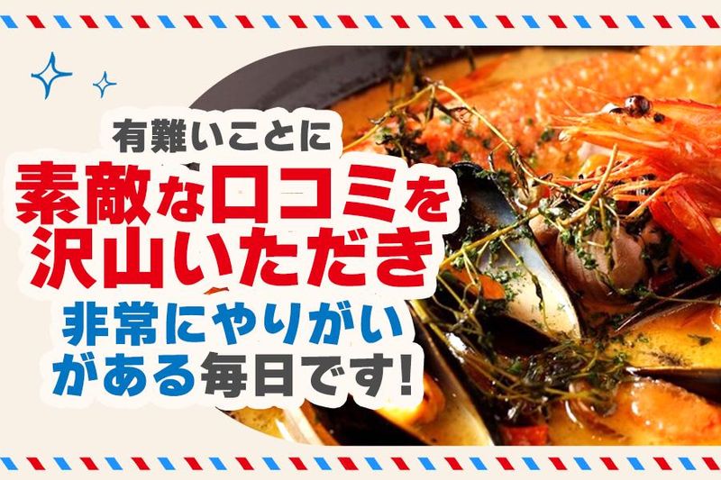 仕事内容 ⭐⭐地中海料理専門店 Mar Mare⭐⭐ 外苑前駅3番出口より徒歩2分の好立地。 地中海の雰囲気が漂う、 隠れ家のようなオシャレなお店です。 ありがたいことに、お客様から 素敵な口コミを多数いただいており、 やりがいを感じながら働ける環境が整っています。 魚介とワインを楽しめる地中海料理店 **「Mar Mare(マルマーレ)」**で、 私たちと一緒にお店を盛り上げていきませんか? ✦・┈┈┈┈┈ ・✦✦・┈┈┈┈┈ ・✦ <<主な業務内容>> ⏩キッチン業務 ⭐食材の仕込み ⭐調理・盛り付け ⭐洗い場対応 ⭐調理場の清掃 など まずは野菜のカットなど 簡単なことからスタート(^^) 出来ることが少しずつお願いします!
