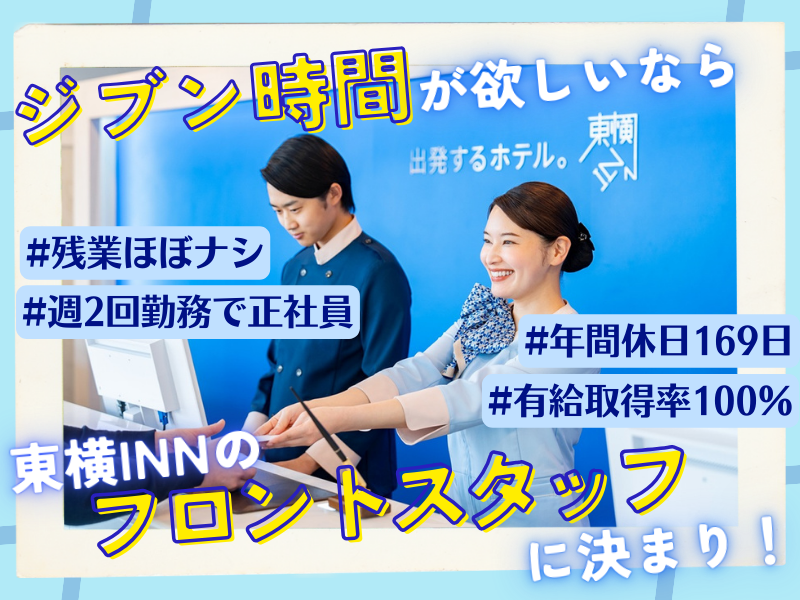 仕事内容  ̄ ̄ ̄ ̄ ̄ ̄ ̄ ̄ ̄ ̄ ̄ ̄ ̄ ̄ \はじめての接客も安心/ 未来につながる第一歩を 「東横INN徳山駅北口」で! ______________ ビジネスホテルのフロント業務として、 チェックイン・アウト対応や予約受付、 お客様のご案内などをお任せします。 【 具体的な仕事内容 】 *簡単なPCでの入力作業 *各お部屋のチェック、備品発注 *自販機の補充やロビーの簡単な清掃 *宅配便等の手配 *予約の受付や変更の電話対応 など ⭐趣味と仕事の両立を全力サポート! - 東横INNのフロントの最大の特徴は 休みがとても多く、プライベートの時間を しっかり確保しながら働けること! 25時間勤務後に2日間の休みが 取れるため、趣味や自分磨きに 好きなだけ没頭できるんです♪ また、有給を使うことで 長期連休にすることも可能!! 出勤時にスーツケースを持参して、 勤務終了後にそのまま 国内旅行に行くことも可能◎ 東横INNは国内外350店舗以上あるので、 宿泊割引制度で宿泊費を抑え、 浮いたお金で、旅行はもちろん グルメや買い物も満喫できます。 ⭐応募のきっかけは、 “ちょっと気になる”でOK♪ - 東横INN徳山駅北口でなら、 あなたの人生を豊かにする働き方が可能です。 “働くこと=頑張りすぎる”って思ってたけど、 東横INNで初めて “自分を大事にできる働き方”に出会えます!