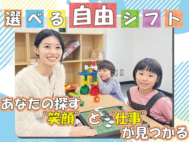 勤務時間詳細 ◎完全シフト制(1か月単位)◎ ■月~土(週2日~ok) <平日> 13:15~18:45(実働5.5時間) <土曜> 8:00~17:30(実働5~8時間) <学校休業日> 8:00~18:45(実働5~8時間) ※休憩時間は法定通り (6時間以上:45分、8時間以上:60分) 契約更新期間:3ヶ月