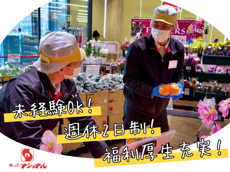 仕事内容: -------------株式会社スーパーナショナルの5つの特徴!------------- ① 業界・職種未経験者歓迎! ② 経験者も大歓迎! ③ 高校生初めてのアルバイトも応援! ④ シフト制でプライベート充実! ⑤駅チカで通いやすい!福利厚生も完備! 【株式会社スーパーナショナルとは?】 大阪・兵庫エリアで「地域密着」を掲げて展開する 老舗スーパーマーケットチェーンです。 1961年の創業以来、プロの目利きによる鮮度の高い生鮮食品と 納得の安さを両立させ、地元の食卓を支え続けています。 住宅街に馴染む店舗設計と、 ポイントサービスなどの主婦層に寄り添った施策が特徴です。 【企業HP】 https://www.supernational.co.jp/ 【職種】 スーパーの店舗スタッフ 【給与】 時給1,180〜1,625円 (学生/時給1,180〜1,330円) ※給与幅は時間帯による 7:00〜9:00/時給1,280円 9:00〜16:00/時給1,180円 16:00〜19:00/時給1,280円 19:00〜22:00/時給1,330円 22:00〜/時給1,625円 【主な仕事内容】 スーパーの店舗スタッフ業務をお任せします! <レジ> レジでのお仕事(お会計)です。 レジ打ち、商品スキャン、商品の袋詰めなど。 <お野菜(青果)> 青果コーナーでのお仕事です。 商品が売り場に並ぶまでの一連の作業をお任せします。 <具体的には> お野菜・果物のカット、パック詰め、 盛り付け、値付け、品出しなど。 <お肉(精肉)> 精肉コーナーでのお仕事です。 商品が売り場に並ぶまでの一連の作業をお任せします。 肉の成型、カット、パック詰め、 値付け、包装、品出しなど。 【求める人材】 ・業界・職種未経験者歓迎! ・高校生可 【こんな方のご応募、お待ちしております!】 ・フリーターの方でも大歓迎! ・資格不要、高卒OK ・新卒・既卒・第二新卒OK ・20代〜50代が活躍中! ※前職が居酒屋、接客スタッフ、コンビニスタッフ、営業、 物流、倉庫、カフェ、店長、家電量販店、アパレル、 サービス業、軽作業など前職は様々な方が活躍しています。 【休日休暇】 シフト制 ・週3〜5日勤務(職種・時間帯による) ・月に1・2回程度は日・祝の勤務も有 【勤務地】 <築港店> 大阪府大阪市港区築港4-2-27 南港ポートタウン線「ポートタウン西」駅スグ! 大阪市内中心からも電車で30分ほどと通いやすいです! 【福利厚生・その他】 ・社会保険完備(雇用・労災・健康・年金) ・交通費支給 ・社員割引有 ・扶養控除内OK ・制服貸与 【その他】 面接1回
