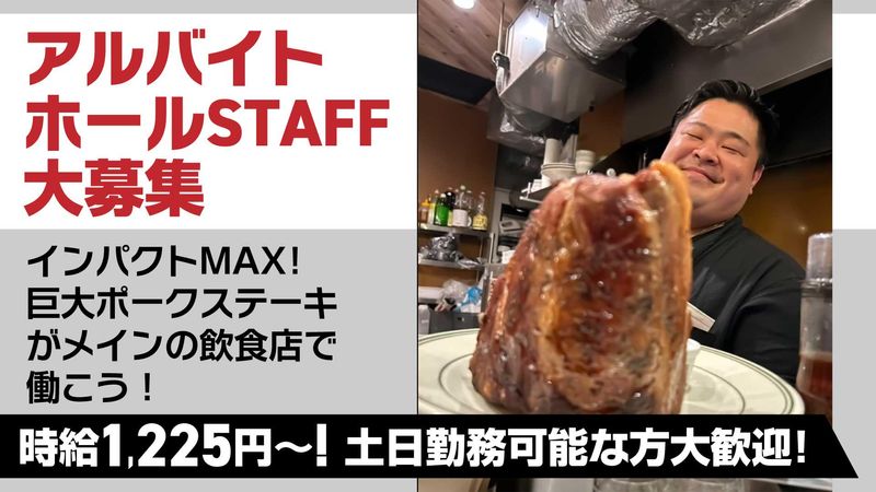 平日ランチ・土日大歓迎⭐駅チカ6分⭐ポークステーキの賄い有