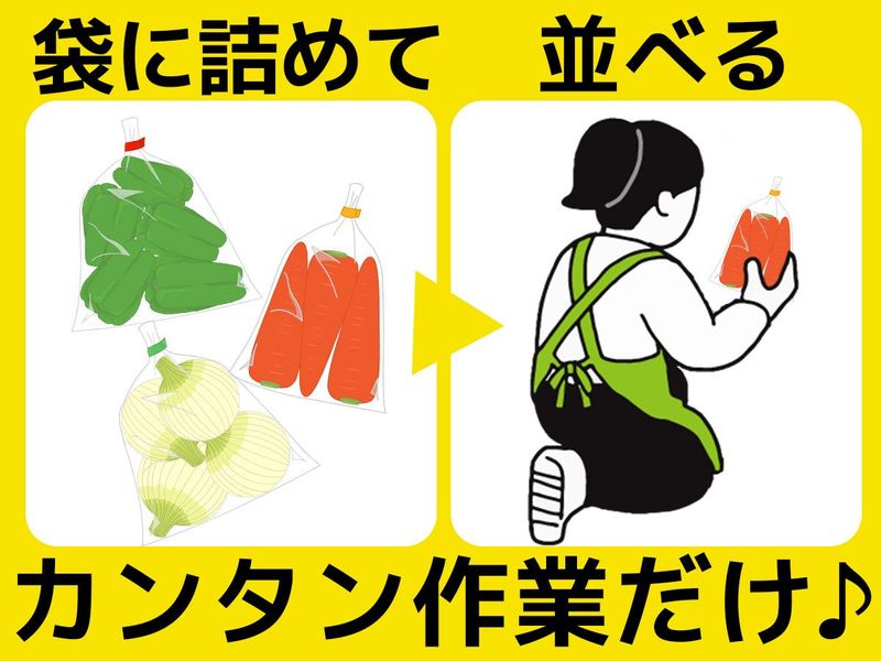 仕事内容 ☆★============== 野菜や果物を袋に詰めて⇒並べるだけ♪ 裏方でコツコツ×かんたんワーク◎ ==============☆★ 【 仕事内容 】 ・果実や野菜を袋・パックに詰める ・店頭に綺麗に並べる ・売り場の整理 …など◎ カンタン作業なので未経験でも安心です! / 人見知りの方でも安心♪ バックヤード(裏方)メインの作業! \ ▼家事に活かせるスキルが身に付く  ̄ ̄V ̄ ̄ ̄ ̄ ̄ ̄ ̄ ̄ ̄ ̄ ̄ ̄ ̄ ̄ 鮮度の良い色々な種類の青果を扱うので、「鮮度チェックのコツ」や「より質の高い青果を選ぶための目利き力」も自然と養われていきますよ♪ ▼研修&サポート抜群でスグ即戦力に  ̄ ̄V ̄ ̄ ̄ ̄ ̄ ̄ ̄ ̄ ̄ ̄ ̄ ̄ ̄ ̄ 事前研修で、業務の流れや基本を覚えてからお仕事をスタートしましょう!現場に出ても、頼れる先輩スタッフや社員さんがしっかりフォローするのでご安心くださいね◎ ――――――――――――――― スタッフの声 ――――――――――――――― パート未経験で不安でしたが、よく利用するお店で雰囲気も知っていたので思い切って応募!野菜や果物を袋詰めしたり並べたりするシンプルな作業で、すぐ覚えられましたよ♪
