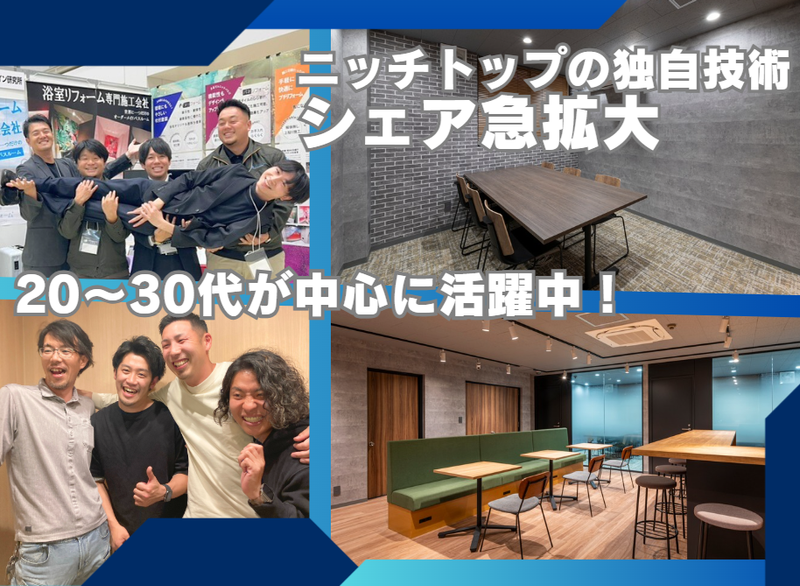 仕事内容 ▛▝▝▝▝▝▝▝▝▝▝▝▝▝▝▝▝▝▝ ▜ 独自技術「エコバスリフォーム」で 業界シェア急拡大中のベンチャー企業! 単なるモノ売りではない営業スタイル◎ ▙ ▖▖▖▖▖▖▖▖▖▖▖▖▖▖▖▖▖▖▟ \\この仕事の魅力// ==================== ⏩大手メーカーと提携し商品開発・企画も! ⏩競合がほぼいない独自技術で市場急拡大中 ⏩コロナ禍も売上年率20%以上成長を継続 ⏩土日祝休み&年間休日125日◎ ⏩入社後は営業力向上を徹底サポート! ==================== |◤ 仕事内容 ◢|  ̄ ̄ ̄ ̄ ̄ ̄ ̄ ̄ ̄ ̄ ̄ ̄ ̄ ̄ ̄ ̄ ̄ ̄ ̄ ̄ 4,000万室を超えるホテルや中古住宅の 浴室をターゲット市場とし、独自開発の 浴室改修技術「エコバスリフォーム」を 提案していただきます! 具体的には…  ̄ ̄ ̄ ̄ ̄ ̄ ̄ ⏩お客様への提案活動 └ メインは、お取引先からの 「こんなお風呂にしたい」 「困っている」という相談への対応です。 詳しくお話を聞き、 見積もりなどを作成します。 ⏩顧客との信頼関係づくり └ 商社やホームセンター、ガス会社など、 パートナー企業の担当者様と 良い関係を築きます。 「〇〇様を紹介するよ」と 言ってもらえることもあります。 ⏩商品の企画・開発 └ お客様の「こんなことできない?」 という声(ニーズ)を会社に持ち帰り、 新しいリフォーム商材の 企画や開発に携わることもできます。 ⏩技術を広める活動 └ 展示会やイベントに参加し、 まだエコバスリフォームを知らない方へ 独自の技術をアピールします。 業界をリードする急成長企業の 課題解決型営業にチャレンジしてみませんか? ●エコバスリフォームについて  ̄ ̄V ̄ ̄ ̄ ̄ ̄ ̄ ̄ ̄ ̄ ̄ ̄ ̄ 当社の「エコバスリフォーム」は、 既存浴室を解体せずに新しい浴室に 生まれ変わらせる独自工法です。 実質的に競合が少ない恵まれた市場環境 ですが、だからこそ「認知拡大と信頼構築 のための地道な活動」が重要となります。 ┏──────────────────┓ 成長を加速させる3つの働きやすい環境 ┗──────────────────┛ ✅未経験者徹底サポート!充実の教育体制  ̄ ̄ ̄ ̄ ̄ ̄ ̄ ̄ ̄ ̄ ̄ ̄ ̄ ̄ ̄ ̄ ̄ ̄ ̄ ̄ 営業・技術両面での教育体制が充実。 自社開発の映像マニュアルと、先輩社員による 習熟度別OJTにより短期間でスキルが身につきます。 また独自開発の営業・施工管理アプリを全社員が 活用し、業務の効率化を実現しています。 ✅プライベート充実!残業を減らすDX環境  ̄ ̄ ̄ ̄ ̄ ̄ ̄ ̄ ̄ ̄ ̄ ̄ ̄ ̄ ̄ ̄ ̄ ̄ ̄ ̄ 当社ではDXやAI技術の活用により、 業務効率化を進め、土日祝日の休暇確保と 残業時間の大幅削減を実現。 プライベートと仕事のバランスを大切に できる環境づくりに取り組んでいます。 ✅成長企業でのやりがい  ̄ ̄ ̄ ̄ ̄ ̄ ̄ ̄ ̄ ̄ ̄ ̄ ̄ ̄ ̄ ̄ ̄ ̄ ̄ ̄ コロナ禍を含む過去5年間で、売上高は 年率20%以上の伸びを記録。 主にBtoBビジネスとして「建設会社」 「リフォーム会社」「住宅資材商社」との 取引を基盤としつつ、大手ホームセンターでの 店頭展示も積極的に実施しています。 |◤ 当社について ◢|  ̄ ̄ ̄ ̄ ̄ ̄ ̄ ̄ ̄ ̄ ̄ ̄ ̄ ̄ ̄ ̄ ̄ ̄ ̄ ̄ 当社は2000年2月に設立され、 浴室リフォームを中心とした住宅リフォーム の企画・立案・商品開発・施工を行っています。 独自の浴室リフォーム工法「エコバス リフォーム」の提案・施工を強みとし、 現在は関西圏・首都圏・東海圏を中心に 事業を展開しています。※転勤なし