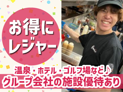 職場環境 外食事業部は中途入社の方が多く、 店舗スタッフの多くはパートの主婦や アルバイトの学生・フリーター。 様々な立場の方がいるので、 自然と相手を気遣った 仕事ぶりが身に付きます。 人と一緒に何かをすることが 好きな方はピッタリですね。