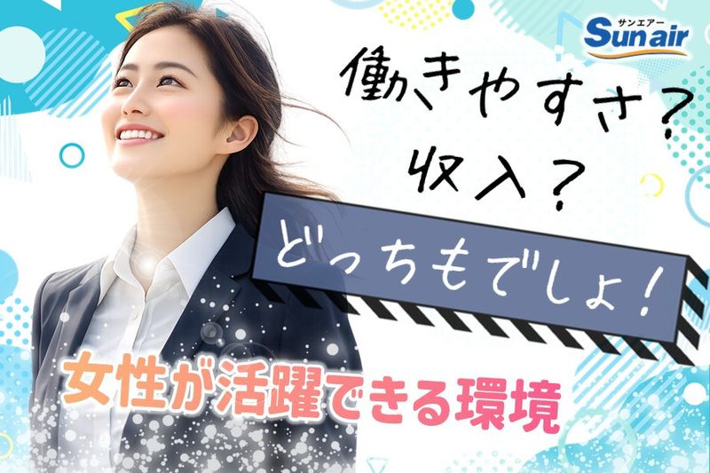 【応募の流れ】 【STEP.1】お電話にてご応募 ▼ 【STEP.2】担当者と面接日時等の打ち合わせ ▼ 【STEP.3】面接 ▼ 【STEP.4】内定 ■面接日・入社日は相談に応じます。まずはお気軽にご応募ください! アクセス(勤務地) 所在地 愛知県春日井市不二ガ丘1丁目40 【応募方法】 応募フォーム、又はお電話にてご連絡ください。 ■ご応募・お問い合わせ 株式会社Sun air 電話番号:0568-55-4932 受付時間:8:30~17:00 ■WEBからのご応募 応募先へ進むを押してご応募ください。 【職場見学お待ちしています!!】 入社する前に、実際に働く社員や会社をぜひ見学してください。 実際に勤務する場所を見ていただくことによって安心してお仕事できると思います。