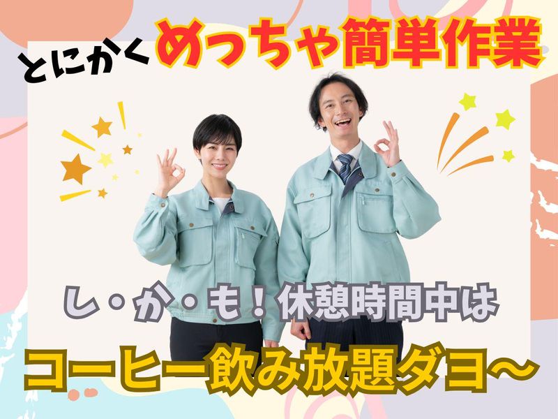仕事内容 ⭐==============⭐ 大手コーヒーチェーンの工場で安心勤務♪ 9時~17時勤務で家庭との両立も◎ 休憩中はおいしいコーヒー飲み放題♪ ⭐==============⭐ 大手コーヒーチェーンの工場内でドリップコーヒーの梱包・検品作業をお願いします。 【おすすめポイント】 ✅大手コーヒーチェーンの工場で安心 ✅未経験スタート大歓迎 ✅重たいものなしの軽作業 ✅主婦さん・女性スタッフ活躍中 ✅希望休も取りやすい ✅扶養内での勤務OK ✅週2日~OKで家庭と両立◎ ✅休憩中はコーヒー飲み放題♪ ✅週払いOKで急な出費にも安心 【具体的なお仕事内容】 ✅コーヒーパックの検品 ✅商品の梱包作業 ✅コーヒー豆の仕分けなど 決められた数量をモクモクと詰めていくだけのシンプル作業です! 作業はマニュアル完備で、工程で必要なカンタンな機械操作もあります。難しい操作は一切なし。 先輩スタッフや常駐社員がしっかりサポートするので、未経験の方でも安心してスタートできます♪ モクモク作業が中心なので、「接客が苦手」「コツコツ作業が好き」という方にもピッタリのお仕事です。