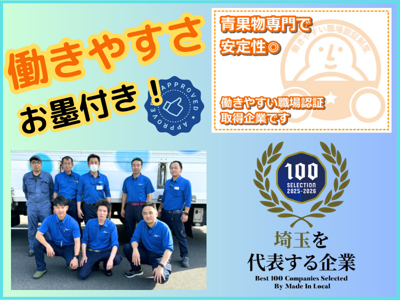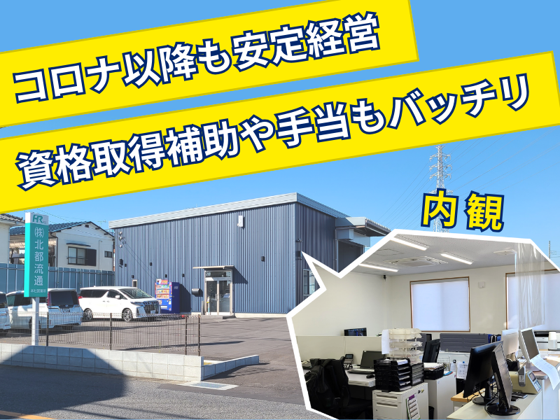 どんな方にもオススメ!一般事務のお仕事◎ 人気の一般事務のお仕事です。初めは契約社員さんとして勤務していただき、6か月後に正社員登用となります。今まではアルバイトやパートで従事していたけど正社員を目指したい…そんな方にもおすすめです◎お仕事内容も難しくない一般事務業務なので、誰でもすぐに慣れていただくことが可能です。 しっかりお休みも取れてプライベートも充実◎完全週休2日・年間休日105日! お給与と同じくらいお休みも大切◎嬉しい日曜+1日の完全週休2日でしっかり休めます。夜勤のお仕事のため、朝が苦手な方、日中の時間をプライベートに使いたい方などにもオススメ◎残業もなく予定を立てやすいこともおすすめポイントです。 抜群の安定性。長く安心してお仕事をしたいなら、ぜひ北都流通へ◎ 私たちが扱っているのは、皆さんの家庭で日頃食べている野菜や果物。景気に左右されづらく、安定した経営が出来ているのが特徴です。2009年に設立して以降、右肩上がりの成長を続け、5人からスタートした社員数も現在では53人に。コロナ流行の中でも基本給をベースアップするなど会社が成長すると同時に社員にも還元しております。家族のために安定した会社で働きたい方、必見です。21年には本社を移転。心機一転、さらなる飛躍を目指します。これから一緒に北都流通を大きくしていっていただける方、ぜひご応募お待ちしております! 必須スキル・経験 ●事務業務の就業経験が6ヶ月以上ある方 PCの簡単な操作や、Excelの使用経験があればOK! 待遇 ・賞与年2回(7・12月)※実績による ・社会保険完備(雇用・労災・健康・厚生年金) ・交通費支給:月2万5000円まで ・インフルエンザ予防接種補助あり(扶養家族も補助あり)*規定あり ・時間外手当100%支給 ※1分単位で支給いたします ・勤続手当:1年ごとに毎月500円 ・評価手当(毎月):能力に応じ5段階、上限5万2140円 ・資格手当(資格登録者対象 毎月): 運行管理者8000円、衛生管理者8000円、安全管理者5000円など ・制服貸与 ・車・バイク通勤OK 無料駐車場有 ・資格取得補助 ・研修期間 最長1か月 ・ベネステーション加入(主にレジャー施設や宿泊地を優待料金で使用可能) ・カフェテリアプラン(2024年9月より開始) 付与されたポイントを商品や体験施設でのポイント交換にて使用可能 ・退職金制度(2025年2月から) その他要件 (応募の流れ) ご応募の際は当ページから必要事項をご記入の上、送信していただくか、直接お電話にてご応募ください。 電話番号は、0120-090-831です。 ※求人番号「8の8」とお伝えいただきますとスムーズです。 お電話での受付は平日9:00~18:00になります。左記以外の時間は、お手数ですがwebよりご応募ください。後日ご連絡差し上げます。webでのご応募の場合は、メールが届きますのでご返信をお願いいたします。 (応募受付) こちらからお電話またはメールにてご連絡差し上げます。現在会社面接・web面接の他に現場見学・お仕事体験(いずれについても30分程度、無償になります)での対応も可能です。ご希望がございましたら、お気軽にご相談ください。 *面接方法については、お電話での受付時に確認させていただきます。 ▼ (面接/職場見学等) サイトの情報だけではわからないこと、どんどん質問してください。なんでもお答えします。まずはお気軽にお越しください◎ ▼ (採用) *勤務中で隙間時間に面接したい方のために、web面接を実施中!「仕事は探したいけど、今の仕事も休めない…」という方にも、隙間時間に面接を受けていただける体制がしっかりと整っています!もちろん職場をちゃんと見てから決めたいという方は直接の面接も可能です◎お気軽にご要望をお伝えくださいね! *埼玉県の「地域を代表する企業100選」に選ばれました! https://madeinlocal.jp/category/companies/saitama037 募集拠点 本社営業所 埼玉県越谷市谷中町2-13-1 変更の範囲(仕事内容) なし 勤務先補足(変更の範囲等) なし 契約期間・更新の有無 契約社員6ヶ月の後正社員登用 試用期間あり