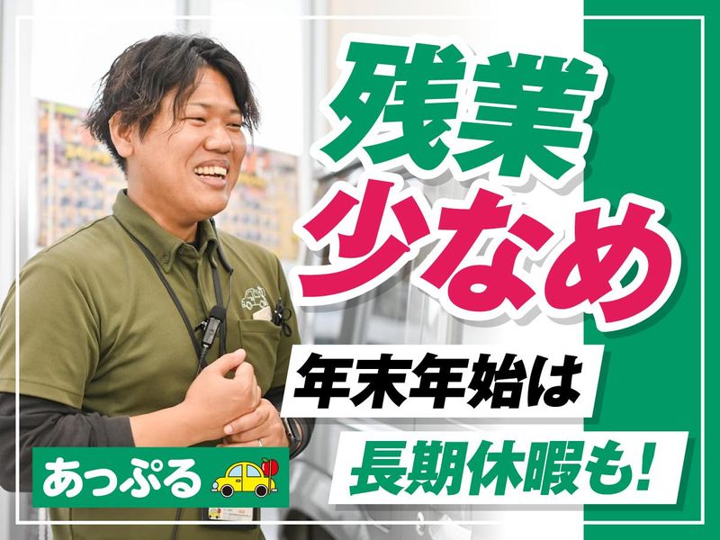 仕事内容 <求人のポイント> ✅未経験でも月給30万円以上 ✅入社1ヶ月で初成約へ!研修サポート充実 ✅販売ノルマなしで気持ちにゆとり ✅新規出店を続ける業界の成長企業 ――――――――――――――――― ✨面接はお気軽にお越しください✨ 堅苦しい雰囲気は一切なし! 楽しくお互いを知る場にしたいと思っているので、 リラックスしてお越しください♪ 人や雰囲気を確かめてから、 入社を決めたいという方も大歓迎。 当社が働くのにふさわしい場所か、 あなたも私たちを見極めてください! <<詳しくは当社ホームページをチェック>> https://www.apple-car.jp/ ――――――――――――――――― ノルマがなくても高収入! 成長を続ける中古車販売店”あっぷる”で、 あなたも働いてみませんか? 以下のような業務をお任せします。 ●中古車のご案内 ┗車の買い替えを検討しているお客様が、 ネットやチラシを見て来店されます。 お客様のご要望の確認や、 クルマの説明などをお願いします。 ●WEBへの情報掲載 ┗中古車検索サイトへ 新しい中古車の情報を登録します。 ●洗車 ┗お客様がいない時間で、 展示車をキレイにします。 ↓ ↓ ↓ ↓ ↓ ↓ 仕事のポイントをご紹介 ↓ ↓ ↓ ↓ ↓ ↓ ①飛び込みなしの反響営業  ̄ ̄ ̄ ̄ ̄ ̄ ̄ ̄ ̄ ̄ ̄ ̄ ̄ お客様の方から来店や問い合わせをいただくので、 営業が「中古車いりませんか?」といった 探客をする必要はありません。 基本は店舗内でのお仕事なので、 外回りで時間を取られないのも◎ ②クルマに詳しくなくても大丈夫  ̄ ̄ ̄ ̄ ̄ ̄ ̄ ̄ ̄ ̄ ̄ ̄ ̄ ̄ ̄ お客様は「この車が欲しい」と 決めて来店されることも多く、 疑問や不安を解決していくことで 自然と成約に繋がります。 先輩のサポートもありますので、 新人さんもスグに活躍できますよ! ③安定して高収入をGET  ̄ ̄ ̄ ̄ ̄ ̄ ̄ ̄ ̄ ̄ ̄ 当社は販売ノルマがなく、 売上次第で収入が落ちたりしません。 営業にありがちな 「今月ヤバいかも…」という プレッシャーとは無縁です! 自分のペースで頑張ることができます。 - ✨入社後のステップUPは… - 未経験でも心配なし! 入社後はOJT形式での研修を行います。 最初は先輩と一緒に商談を担当。 あなたに合わせてアドバイスしていきます。 マンツーマン指導になるので、 分からないことは何でも質問してください。 順調にいけば、入社1ヶ月目で初成約へ! 入社2~3ヶ月目で独り立ちしていき、 自分のスタイルでお客様と向き合えるようになります。 ゆくゆくは営業として活躍し続けるだけでなく、 店長やマネージャーへのステップUPも可能です。 管理職になればイベントの企画や中古車の仕入れなど 幅広い業務に携わることができます。 関西~四国エリアで事業拡大を続ける会社ですので、 キャリアUPのチャンスも十分にあります! - ✨先輩からのメッセージ - 「前職は全く違う業界で販売をしていましたが、 中々給与が上がらず転職を決意。 未経験でも高収入を狙える条件に惹かれて、 あっぷるを転職先に選びました。 車に関しては全くの初心者だったので、 最初はやっていけるか不安でしたが、 実際やってみると知識よりも お客様と向き合う姿勢や対話力が 重要な仕事だと気づきました。 ”あなたから買いたい”と思われるような 信頼関係を築くことができれば、 中古車はしっかりと売れていきます。 お客様とどのように関係性を築くかは、 自分の得意なスタイルでOK。 私は前職で身につけたことも活かしつつ、 お客様の期待に応えるようにしています。 結果として販売営業2年目の私も、 毎月平均して15台は売れるように。 年収は前職以上になりましたし、 満足して働くことができています」 ―2年目営業より