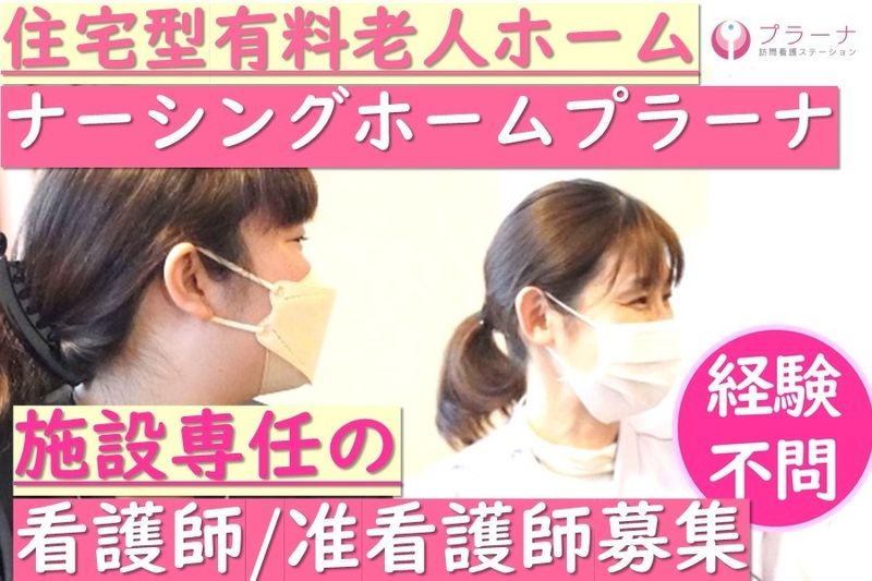 【仕事内容】 経験不問・ブランクOKの有料老人ホームの看護スタッフ募集! ■アピールポイント! ・セラピストによるマッサージやアロマセラピーの施術あり! ・正看護師・准看護師とも大歓迎! ・20代~40代の若いスタッフが多数活躍中! ・夏季・年末年始休暇があり! ・有給休暇は1時間単位から使用OK! ・子育て中のスタッフ活躍中! 環境を整えることが、入居者様・利用者様やそのご家族に対しての万全な対応に繋がる。そう考えています。 ■主な仕事 定員32名の住宅型有料老人ホームのご入居者様の健康管理や薬の管理をお願いします。 ・健康管理 ・薬の管理 ・けがの処置 ・通院付添 など 医師や地域医療機関との調整を行うなど医療や看護の立場からご入居者様をサポートしていただきます。 介護の現場であなたのキャリアを活かし、看護師としてのスキルアップを目指してみませんか。 ●仕事のやりがいについて ご利用者様、そのご家族に「寄り添う」看護が行えることが一番のやりがいです。 当法人で運営する訪問看護ステーションとの連携や様々な研修を通じて、看護師として確かなスキルアップが図れます。 入居者様が安心して暮らせる住まいを提供すると共に、ご入居後もご自宅に帰ることができる支援を目指しています。 「プラーナに来て良かった」「ありがとう」のお言葉が何よりやりがいです。 ●研修について 入職後は、先輩社員によるOJT(一緒に仕事をしながら)での研修を行います。社内での研修・勉強会も充実しています。 経験や知識に自信がない方も安心してご応募ください。 ライフワークバランスを大切にし、寄り添った看護を目指している方はぜひご応募ください。「人柄」を重視しています。 研修制度も充実していますので、経験に自信がない方も安心してご応募ください。 施設見学や、働き方のご質問などのお問合せも大歓迎です。 ご連絡・ご応募お待ちしております。 【求人ID-PL03】