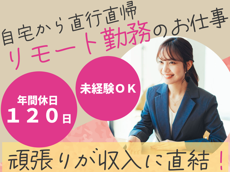 【リモート勤務OK】未経験から月給26万円超え!成果が収入に反映⇒キャリアアップ制度充実|直行直帰OK|賞与年2回|昇給あり
