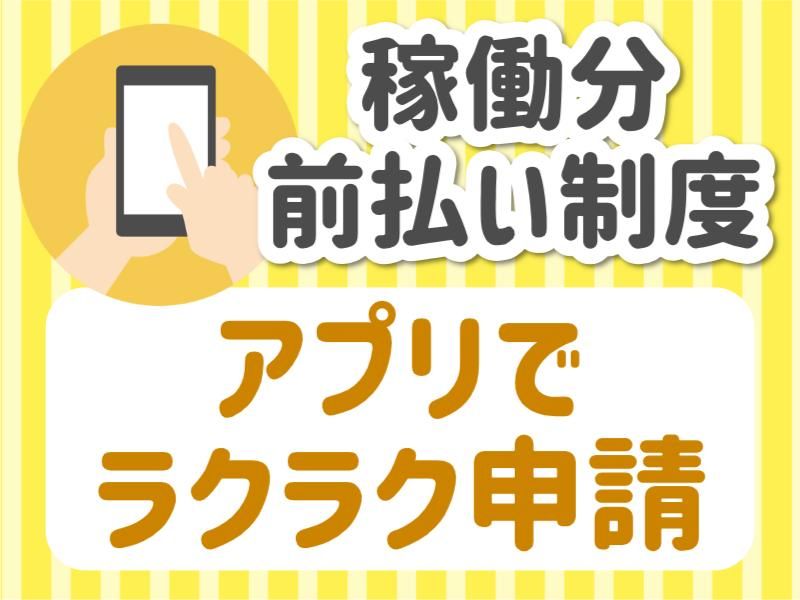【保険制度】 雇用保険、労災保険、健康保険、厚生年金 待遇・福利厚生 【福利厚生】 社会保険完備 交通費規定支給(上限/月3万円) 有給休暇 資格取得支援制有(規定) 制服貸与 マスク・耳栓会社支給 車通勤OK 敷地内無料駐車場完備 住宅手配可 ⇒入社2・3週間後から入居可能 赴任費支給(規定) 正社員登用制度あり 髪色自由!マツエクOK 社員食堂あり 食堂の隣に喫煙所あり お弁当の注文OK(430円程度/1食) 【稼働分前払い制度あり(規定)】 専用アプリで簡単申請!最短、翌日振込可! 「急な出費」など、活用しているスタッフ多数!