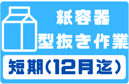 仕事内容 紙製の箱や容器の組立・加工作業 ギフト用の紙箱、紙皿、紙トレー、紙袋などを 製造する工場での軽作業です。 ▼組立・加工作業スタッフのポイント▼ ・短期又は長期勤務選べます ・残業なし ・土日祝休み ・日勤のみ ・空調完備で快適な職場環境 ・駅からすぐ(徒歩1~2分)の職場 < 詳しい仕事内容 > 紙製品が機械から出てきますので、 決められた枚数ごとにバリ取りをしたり、 折り目のとおりに紙箱を折ったり 畳んだりする体にやさしい軽作業です。 < 未経験スタートOK > 特別な経験・資格は必要ありませんので 安心してご連絡ください! ほとんどの方が未経験からスタートしております < こんな経験がある方は大歓迎! > 製造業関連の経験があれば活かせます! ・組立での工場勤務 ・組立での金属加工 雇用形態は 派遣でもパート・アルバイトでもOK < 幅広い年代の方が活躍中! > 若年層・20代・30代・40代。50代などの 幅広い年代の方が活躍しております。 < 空調完備のきれいな職場 > 食品用の紙製品が中心ですので、 汚れることがないきれいな職場です。 空調も完備されてますので、 年間を通して快適な環境です。 < 職場見学あり > 詳細な仕事内容は職場見学にてご説明いたします。 不明点や不安点などは 職場見学を通して確認してみてください! < 働き方 > 就業期間は短期(約3ヵ月)か長期(半年以上)を選べます。 < まずはお問い合わせを > お電話での応募もOK! ご不明な点はお気軽にお問合せください。 TEL/027-360-3561