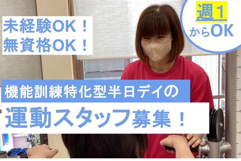 機能訓練特化型半日デイサービスの運動スタッフ募集! ■無資格OK■週1から可■ブランクOK■昇給あり