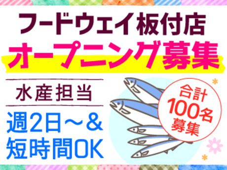 仕事内容 <オープニングスタッフ20名募集☆>おなじみのフードウェイが2026年2月、博多区板付に誕生! 福岡を中心に全国に店舗を展開する食品スーパー 【フードウェイ】が板付に来年2月オープン! 今回は24時間営業型のお店です♪ ピカピカのキレイな店内で オープニング1期生として働いてくれる 新しい仲間を募集します! 今回募集するのは…調理スキル不要の水産スタッフ♪ \\包丁がうまく使えない方もOK// ◎お刺身のパック詰め ◎お寿司の盛付 ◎決まった時間に値引きシール貼り …など、水産コーナーでの裏方作業をお願いします。 ◆初バイト(パート)でも高時給スタート! ◆魚の知識や調理の経験・スキルは必要ありません! ◆キッチンや洗い場など飲食店の経験も不要です♪ 今ならシフトも自由に選び放題♪週2日~&4時間~相談OK★ 記念すべき新店の大切なメンバーだから シフト希望だって最大限に叶えたい… そんな想いからの20名募集なんです! 「Wワークで月の収入をもう少しUPしたい」 「家事や子育てと両立して扶養内パートで」 「授業やサークル優先の短時間バイト」 「朝だけ」「夕方から」「土日祝だけ」 …など、希望をどんどん伝えて下さい☆ 時間帯や曜日によって時給UP★家計に嬉しい社割あり! ●土日祝に勤務したら…時給+50円! ●8時まで&19時以降の勤務は…時給+100円! ●週21時間以上のフル勤務は…時給+80円! 食品・日用品がお得に購入できる従業員割引や 交通費支給&昇給有などメリット盛りだくさん♪ 長期安定派の方は社員へのステップUPも可能です! たくさんの同期と一緒にスタート! レジ・惣菜・青果・品出しなどいろんな部署で 採用するので、出会いもたくさん♪ 既存店では高校生・大学生・主婦・中高年・シニアと、 幅広い層の方が活躍中です★ 部門が多いので、働きたい時間帯が変わったり、 「もっと稼げる仕事がしたい」なんて時は異動もOK♪ 楽しく長く働ける環境を一緒に作っていきましょう!