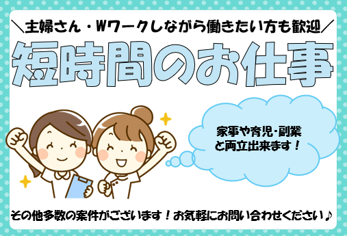 資格・経験 <<無資格・未経験も大歓迎です!!>> 未経験から始められる病院でのお仕事です! 家事や子育てと両立中の方大勢活躍中です♪