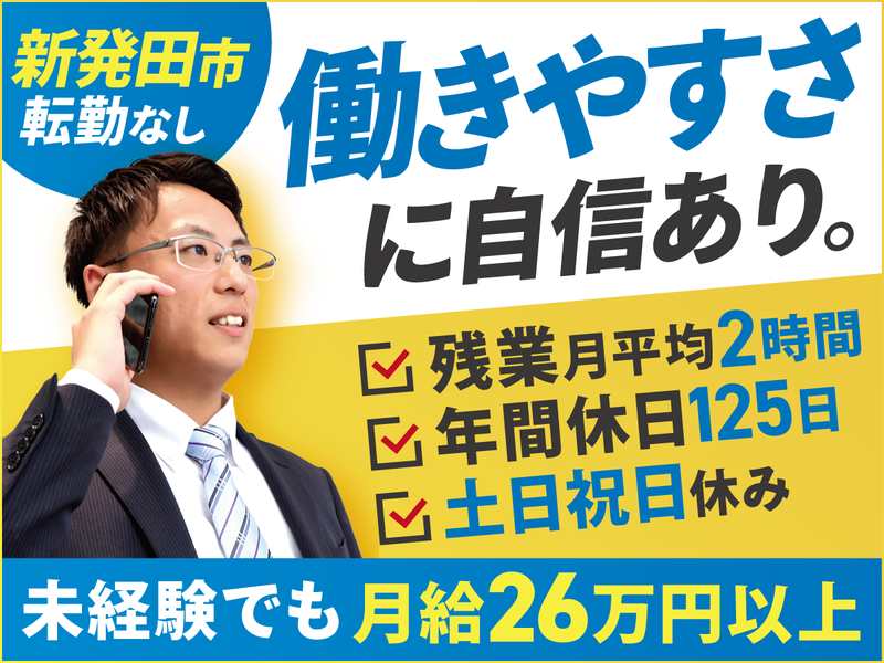 仕事内容 \土日祝休み&年休125日×月給26万円~/  ̄ ̄ ̄ ̄ ̄ ̄ ̄ ̄ ̄ ̄ ̄ ̄ ̄ ̄ ̄ ̄ ̄ ̄ ̄ ̄ *営業なのに残業は少なめ(月平均2h)! *ON/OFFメリハリ!プライベート充実! *転勤なし!安心して働ける職場環境! *充実した導入研修があるから未経験OK! 《 20代~30代活躍中の職場です!! 》 一人ひとりの成長をサポートする制度充実! 社歴に関わらずキャリアアップの機会あり! ==================== <具体的な仕事内容> 新潟県内の中小企業様を中心に、 以下のような営業活動をお任せします! ・通信サービスのサポート対応 ・新規開拓 ・携帯電話の販売 ・DX化に向けたソリューション提案 など >>ノルマなし・飛び込み営業なし お客様としっかり向き合える営業スタイル! >>営業エリアは新潟県内のみ 対面打合せの場合、社用車を使用します。 【入社後】 営業経験がある方もない方も、 新人研修の中で段階ごとに到達目標を設定、 ひとつずつ丁寧に指導しています。 確実に業務を習得することができますので、 ご安心ください! その後キャリアのある先輩営業との同行で、 お客様とのやり取りや提案方法などは、 徐々に覚えてもらえれば大丈夫です! 【1日の平均対応件数】 日によってバラつきはありますが、 オンラインや対面の商談等で、 平均して1日3~4件ほど対応しています。 ==================== <コナン販売ならではの制度や取り組み> 1.充実の福利厚生  ̄ ̄ ̄ ̄ ̄ ̄ ̄ ̄ *就労報奨金制度 *共働きでお子さんを保育所等に預けている スタッフのための育児支援金制度 *悩みを外部に相談できるヘルプライン制度 *婚活事業を利用した社員の婚活支援 など、働きやすい環境を整えています! 2.頑張りはしっかり評価  ̄ ̄ ̄ ̄ ̄ ̄ ̄ ̄ ̄ ̄ ̄ 一人ひとりの実力と成果をしっかり反映する やりがいある人事制度を用意しています。 その判断のもととなる「評価表」は 具体的な評価項目からなるため、正当な 評価を受けることが可能。給与は評価に 応じてしっかりと昇給していきます。 昇格・昇給・昇進のチャンスは皆平等です! [キャリアステップ] 一般スタッフ->主任->係長->課長->部長 とステップアップでき、なかには3年で主任に なるスタッフもいます! また、個人のスキル向上もサポートがあり、 ドコモの認定資格制度により自分のペースで 段階的にステップアップが可能です。 上位の資格試験に合格すると、 最大で月額9万3500円の資格手当を支給! (資格手当の詳細は給与欄に記載!) ==================== <採用HPにも情報多数!> 実際に勤務している先輩スタッフや 研修制度などの情報を随時発信中! https://konanss.jp/