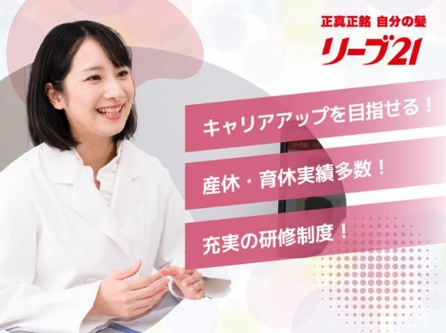 仕事情報 ● 仕事内容 あなたの頑張りが、悩める人を笑顔に変える★ ご来店されたお客様の髪に関するお悩みをじっくりお聞きし、 最適な発毛プログラムをご提案します。 お客様と二人三脚で発毛までサポートをするやりがいの あるお仕事です。 【具体的なお仕事内容】 お客様の髪の悩みをヒアリング 脱毛種類の診断・発毛プランの提案・ご契約 ★リーブ21の特徴★ ◎「ホワイト企業」認定取得企業 ◎厚生労働省・子育てサポート企業「くるみん」取得 ◎厚生労働省・女性活躍推進企業認定最高ランク取得 ◎女性活躍リーディングカンパニー2つ星獲得 ◎産休育休取得率100%・平均勤続年数9.09年 ◎中途採用比率9割・未経験入社7割 ◎有給休暇消化率2024年度77% 頑張り次第で昇給できる 3ヶ月ごとに昇給チャンス!! 契約金額+お店全体の売上目標の達成状況により 給与に反映されます。 頑張りはしっかり評価される環境です。 ※個人ノルマはありません。 キャリアアップも★ 勤続年数に関わらず頑張りが評価されると 複数店舗を運営、スタッフ育成をする マネージャーにキャリアアップも可能です。 充実の6ヶ月研修 ▼入社後2週間/インストラクターによる技術研修 ▼入社3週間目~2ヶ月目/技術研修 ▼入社3~6ヶ月/カウンセリング研修 女性が働きやすい環境完備 ★転勤なし ★休日出勤なし ★毎年10連休のリフレッシュ休暇 ★定時退社で突発的な残業なし ★管理職の女性割合84% 女性の活躍を推進している企業です。