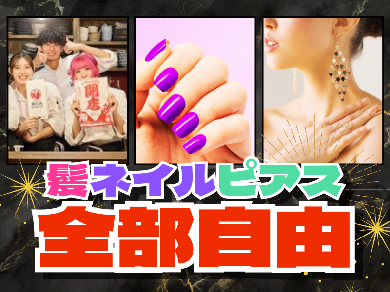 半年以上の居酒屋経験必須・髪ネイルピアス自由!昇給は毎月可能