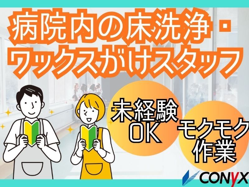【仕事内容】 ⭐未経験からスタートOK/安心のチーム作業⭐ 【主な仕事内容】 ✅病院内の床の洗浄・ワックスがけをチームで行うお仕事です 専門的なスキル・知識が必要なお仕事ですが、 入社後はチームのリーダーが丁寧に指導・研修しますので、ご安心ください。 わからないことはすぐに相談できる環境です! 未経験の方も一つずつスキルを身につけながら、無理なく成長していけます。 【国家資格の取得もサポート!】 希望される方には、国家資格『ビルクリーニング技能士』の取得支援も行っています。 試験にかかる費用は会社が全額負担! 資格取得は必須ではありませんが、スキルアップを目指したい方にはピッタリの環境です◎ ===================== 充実したサポートが自慢です ===================== 創業70年以上のコニックスだからこそ、 働くスタッフへのフォロー体制は抜群です! ⭐覚えられるまで丁寧にしっかりとサポート! ⭐必要時には担当スタッフがすぐにフォロー! ⭐お休みも取りやすい環境です! まずはご相談からでも、お気軽にご応募ください! 【求人ID-ALL02A】