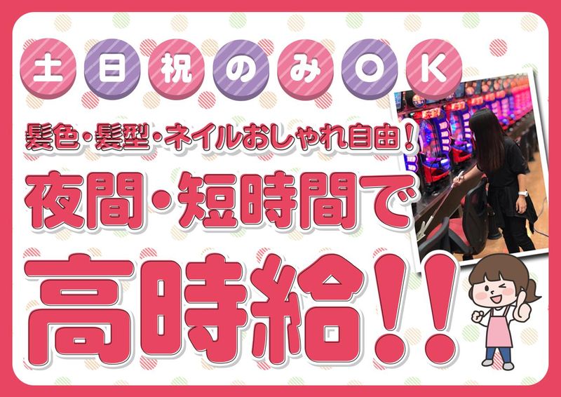 仕事内容 広々とした明るくキレイな パチンコ店内の清掃作業です。 接客不要!閉店後のパチンコ店での清掃をお任せ。 モクモクと集中して作業できます。 運動不足解消にも最適♪ ■パチンコ台の清掃 ■床清掃 ■ゴミ回収 ■トイレの清掃 ■灰皿の清掃 などを行います。 「未経験OK!みなさん初心者からのスタートです!」 「年齢・経験不問。コツコツ派が活躍中!」 「家事の延長でOK。無理なく続けられる清掃ワーク!」 「50代以上も活躍中。体に負担の少ないお仕事です」 「スキマ時間を有効活用できます!」 「一人作業中心。人間関係のストレス少なめ!」 「短時間OK!副業・Wワーク歓迎!」 「生活スタイルに合わせて働ける!」 「健康維持にも◎。無理なく動いて、社会とつながる喜びを!」
