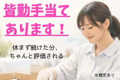 仕事内容 はじめての工場ワークにも、ちょうどいい☆ ☆皆勤手当て、ありまぁす☆ 決められたシフトでコツコツ働くことで、 毎月プラスの手当が支給されます。 「工場の仕事って難しそう…」 「ちゃんとできるか不安…」 そんな理由で選ばれているのが、 人気コスメ製品を扱う工場でのやさしめ軽作業です。 扱うのは、 汗拭きシート・ヘアワックス・化粧水などの製品。 重たい物はほとんどなく、 決まった流れに沿って進める作業が中心です。 ――――――――――――――― ■ お仕事内容 ――――――――――――――― お任せするのは、有名ブランドの コスメ、ケア製品などを種類ごとに分けたり、 所定の場所へ並べたりする作業です。 ・同じ種類のものをまとめる ・数をそろえてケースに入れる ・決められた場所へ移動する むずかしい判断や、 スピードを求められる作業はありません。 自分のペースで進めやすい環境です。 ――――――――――――――― ■ 未経験でも安心 ――――――――――――――― ・入社後は作業の流れから丁寧に説明 ・最初は先輩がそばについてサポート ・分からないことは、その場で確認OK 工場未経験からスタートした方も 多数活躍しています。 ――――――――――――――― ■ 働きやすい職場環境 ――――――――――――――― ・空調完備の清潔な作業スペース ・一年中、温度が安定していて快適 ・落ち着いた雰囲気でモクモク作業 ・社員食堂あり(定食180円~) 「工場=大変そう」というイメージが、 いい意味で変わったという声も多い職場です。 ――――――――――――――― ■ 一日の流れ ――――――――――――――― 8:30~ 業務開始! 10:00~ 15分の小休憩(ちょっと一息◎) 12:00~ お昼休憩(おしゃれな食堂で格安ランチ☆) 12:45~ 業務再開(午後からもがんばっていこう!) 15:00~ 15分の小休憩(ここでいったんリフレッシュ◎) 17:05 業務終了!おつかれさまでした☆ そのあとは夕食のお買い物や、 お子様のお迎えに行くスタッフもいらっしゃいます! 終業時刻も早めなのでジブン時間もしっかり取れますよ! ――――――――――――――― ■ 待遇・条件 ――――――――――――――― ・日勤のみ ・土日祝休み ・月給制 ・社会保険完備 ・交通費支給(規定あり) ・履歴書不要 ・WEB応募OK ◎ 皆勤手当てあり → 決められたシフトで勤務された方を対象に、 毎月支給される手当です。 ※社内規定あり(詳細は面接時にご説明します) ――――――――――――――― ■ こんな方に向いています ――――――――――――――― ・軽めの作業から始めたい ・落ち着いた環境で働きたい ・コツコツ進める作業が好き ・まずは無理のない仕事を探している ――――――――――――――― ■ 応募について ――――――――――――――― ・履歴書不要 ・スマホから簡単応募 ・職場見学のみも歓迎 迷っている時間が一番もったいないかもしれません。 まずは話を聞いてみるだけでOKです。 「違うな」と感じたら、その場で断っていただいて大丈夫です。 応募は【応募ボタン】から1分ほどで完了。 面倒な入力はありません。 あなたのご応募を、お待ちしています。 業務の変更範囲:「会社の定める業務」