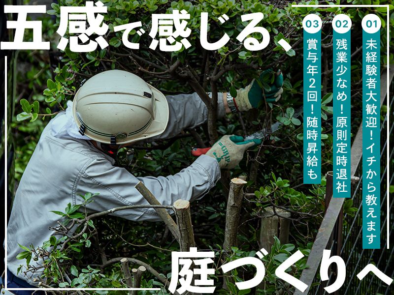 仕事内容 ////////////// 必要なのは「やってみたい」の気持ちだけ 道具の名前からプロの技まで全部教えます! ////////////// …求人のPOINT………………………… ✅未経験者歓迎!採用実績あり ✅手厚い教育制度あり ✅賞与年2回あり!随時昇給も ✅実働7時間&残業少なめ …………………………………………… 【仕事内容】 個人宅の庭づくりや樹木の手入れ、 公園・街路樹・マンションなどの樹木管理 ●樹木剪定・芝刈り・草刈り ●樹木植えつけ ●薬剤散布 ●作業車の運転業務 ●災害対応 ※公園の木が急に倒れた場合の撤去作業など ※案件の割合は庭づくり5:庭の管理5 □作業エリア 佐倉市・千葉市・印西市やつくば市など □雨天時の対応 雨が強いときは現場が休みになり、 機械整備など屋内での作業へ変更になります。 雨が続いて屋内作業もなくなった際は 仕事が休みになります。※給与保障あり 休日出勤はございません! □教育制度 ベテラン社員がマンツーマン指導! 未経験の方は道具の使い方や 準備などの基礎を学んだ後、 2~3週間ほどハサミを持って実践へ!