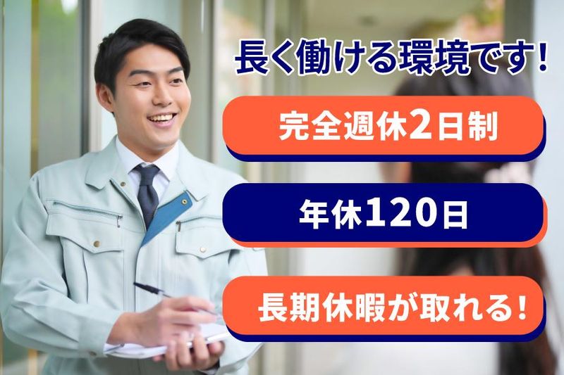 休日休暇 完全週休2日制(土日・祝) 年間休日120日(会社カレンダー) ・夏季休暇 ・年末年始休暇 ・GW休暇 ・有給休暇