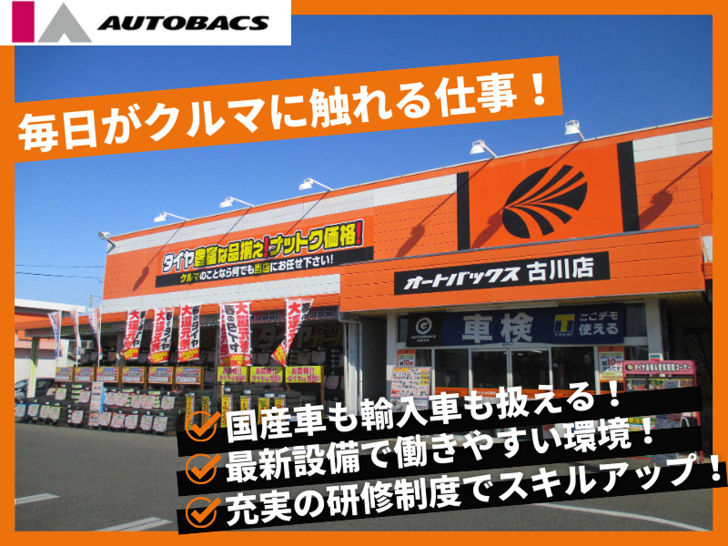 仕事内容: \宮城で、整備士として長く働きたい方へ/ 【オートバックスをおススメする5つの理由】 ① 月7~10日休みのシフト制 ・残業月平均20時間 ・プライベートの時間もしっかり確保できます ② 営業ノルマなし ・売上目標に追われることはありません ・整備・点検・修理など、技術業務に専念できます ③ 転勤なし(宮城県内勤務) ・県外転勤は一切ありません ・生活基盤を大切にしながら働けます ④ 充実した福利厚生 ・賞与年2回、退職金制度あり ・社員割引、共済会など安心の制度が整っています ⑤ 幅広い整備経験が積める ・タイヤ交換から車検整備、パーツ取付まで ・カー用品店ならではの多彩な整備に携われます ━━━━━━━━━━━━━━━━━━━ 今こそ「資格を活かして、長く働ける環境」を選びませんか。 ━━━━━━━━━━━━━━━━━━━ ■具体的な業務内容 ・タイヤ交換(夏・冬タイヤ、バランス調整) ・オイル交換、バッテリー交換、エアコンフィルター交換 ・パーツ取付(ナビ・ドラレコ・ETC・カーオーディオ等) ・一般整備、故障診断(電装系・エンジン不調など) ・12ヶ月点検、車検整備(分解整備・部品交換) ・車検完成検査(※検査員資格保有者) ・お客様への整備・車検内容の説明 ※お客様と直接会話する機会が多く、感謝される瞬間が多いです ※販売ノルマはありません ※必要な整備内容を丁寧に説明することを大切にしています。 ※経験・スキルに応じて即戦力として配置します ※扱車種は国産車全般(トヨタ/日産/ホンダ/マツダ/スバル/スズキ など)が中心です ■一日のタイムスケジュール 9:30 出勤・朝礼 ・担当作業の共有、当日の流れ確認 10:00 軽作業スタート ・ピット清掃、工具点検 ・洗車、タイヤ・オイル交換補助 ※必ず先輩が近くでフォロー 12:00〜15:00 休憩(交代制) 午後 整備サポート・接客対応 ・ナビ・ドラレコ取付補助 ・お客様対応(先輩同席) 18:00〜19:20 閉店業務・終礼 【繁忙期】 タイヤ交換シーズン・大型連休前などは残業が発生する場合があります。 ※長時間残業の常態化はなく、時間管理を徹底しています。