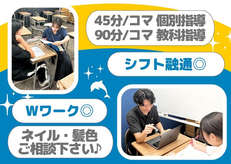 週1日~3h~◎得意な1教科からOK!ネイル・髪色も相談ok