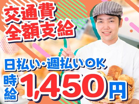 仕事内容 この求人のポイント  ̄ ̄ ̄ ̄ ̄ ̄ ̄ ̄ ̄ 【稼げる!高時給】実働6時間で、日収8,700円! 【未経験も大歓迎】経験や年齢を問わず、活躍できる 【選べる給与規定】嬉しい!日払いや週払いにも対応 【パン好き集まれ】パンに囲まれて楽しく働けます♪ スーパーマーケットのベーカリーコーナーに並んでいる パンやドーナツを作る(焼き上げる)業務をお任せします! 作業内容について  ̄ ̄ ̄ ̄ ̄ ̄ ̄ ̄ ̄ <パンの製造> クロワッサンにカレーパン、メロンパンにドーナツなど 焼き立てのパンを店内のサブキッチンで製造します。 “製造”といっても、冷凍生地を専用のオーブンを使って 焼き上げるだけなので、作業はとってもシンプルです! <補助業務> 加工したパンを売り場に陳列したり、状態を 確認して古いものは入れ替えたり、パンに 値段シールを貼ったり、冷凍生地の品出しなど、 補助的な業務をお任せする場合もあります。 業務の流れ(クロワッサンの場合)  ̄ ̄ ̄ ̄ ̄ ̄ ̄ ̄ ̄ ̄ ̄ ̄ ̄ ̄ ̄ ̄ ■冷凍生地の解凍 ┗解凍時間を管理する(約1~2時間) ↓↓ ■発酵 ┗生地を発酵させ膨らませる(約30~60分) ↓↓ ■焼成 ┗オーブンで焼き上げる(約15~20分) ↓↓ ■冷却 ┗焼き上がった商品を自然冷却(約15~20分) ↓↓ ■仕上げ ┗必要に応じてチョコなどをトッピング(約5分) 未経験も大歓迎!  ̄ ̄ ̄ ̄ ̄ ̄ ̄ ̄ ̄ 業務内容はシンプルだからスグに慣れるはず♪ と言っても、多少は覚えることもあります。 雰囲気の良い環境づくりに力を入れているので 在籍スタッフによる丁寧なサポートのほかにも 現場担当によるフォローもあるので安心です! パン好きは要チェック  ̄ ̄ ̄ ̄ ̄ ̄ ̄ ̄ ̄ ̄ ̄ 焼き立てのパンの香り…たまらないですよね! 今回、いくつかあるパンの製造方法の中でも 特にカンタンな焼き上げ業務がメインの方法 で作業します♪生地をこねたりする作業はなく 気軽にスタートできるのが魅力です♪日々、 パンの香りとパンに囲まれた夢のような生活が可能です!