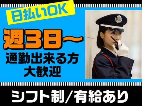 【保険制度】 雇用保険、労災保険、健康保険、厚生年金 待遇・福利厚生 【福利厚生】 ―― <充実の福利厚生> ―― ■面接交通費1000円(規定あり) └ 初回研修時、または給与にて支給 ■交通費全額支給 ■社会保険完備 ■資格手当あり ■日払いOK(規定あり) ※前払いサービス【即給】をご利用いただきます! ■制服貸与 *制服預り金1万5000円(退職時返金) ■資格取得制度 ■正社員登用制度 ■研修あり *資格なし、未経験者:研修20h 2万7500円 ※規定あり *経験1年以上(直近3年以内):研修7H ※規定あり └ 30勤務達成後に合計6万円支給 └ 交通誘導2級以上の資格を所持されている方は新任研修免除(現任研修はあり/6h) " ―――――――――――――――