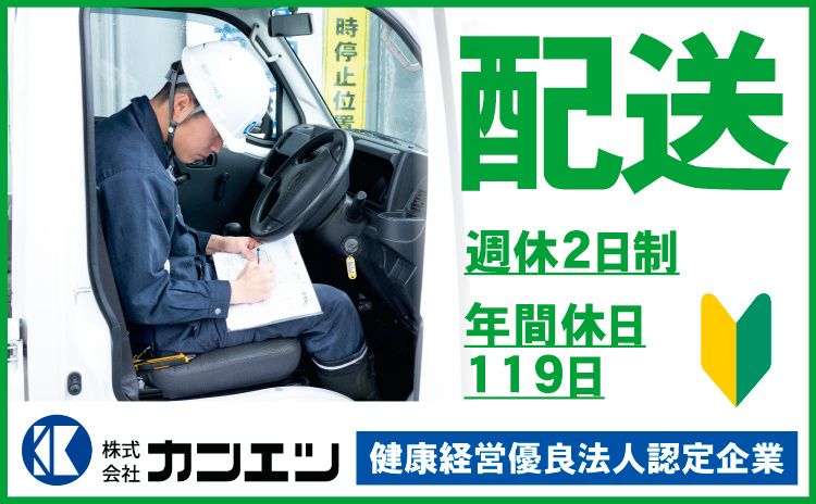 仕事内容 <お仕事のポイント> ・安定の正社員雇用 ・未経験の方も安心 ・普通自動車免許でOK ・年間休日119日 ・完全週休2日制 <仕事内容> 当社が取り扱う土木資材・建設資材の配送業務を担当していただきます。 トラックへの商品積込みから、配送先での荷下ろしまでが主な業務です。 配送先は、新潟市内を中心に、県北方面・阿賀方面・三条方面。 お届け先は、会社・工事現場事務所・建設現場などが中心となります。 配送業務を中心に行いながら、業務に付随する形で、資材の整理・管理、入出庫作業、在庫確認や簡単な商品チェック などの倉庫内作業・商品管理業務も一部お任せします。 <勤務について> 業務に必要な資格は、入社後に会社負担で取得可能です。仕事の流れや作業内容は丁寧にお伝えしますので、配送業務が初めての方でも安心してスタートできます。また、職場見学も可能なため、実際の仕事内容や職場の雰囲気を事前にご確認いただけます。地域に根ざした事業を展開しており、地域密着型で安定した仕事量がありますので、腰を据えて長く働きたい方に適した環境です。 <活かせる資格・経験> ・準中型自動車免許、フォークリフト運転技能者 ・配送ドライバー、物流倉庫内作業、運送業、建設業 【健康経営優良法人2025取得】 株式会社カンエツは土木、建設現場、イベント会場などの あらゆるシーンに対応できる保安用品を取り扱っている会社です。 20代・30代・40代・50代の若年層から中高年まで幅広い年代の社員が在籍。 お客様への「安心と安全」だけでなく社員一人ひとりが健康的に働ける環境を目指しています。 ハローワークで求職中の方や第二新卒、臨時社員、アルバイト、パート、 派遣社員として勤務中の方からの転職相談も受け付けております。