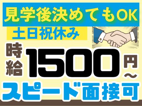 夜勤なし&残業少なめ!土日祝休みで時給1500円!履歴書不要のWEB面接でスピード入社可♪