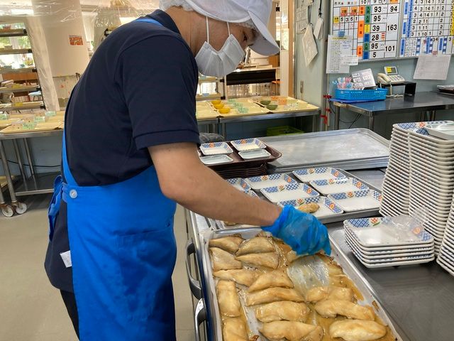 仕事内容 〜*〜*〜*〜*〜*〜*〜*〜*〜*〜 経験者さん、大歓迎! あなたの調理スキル、ここで活かそう! 働くスタッフを大切に! 安心して長く働ける環境です! 〜*〜*〜*〜*〜*〜*〜*〜*〜*〜 ★嬉しいポイント、盛りだくさん! ○お昼ごはんが150円! 食費補助で毎日ハッピー! ○制服は会社でクリーニング! お洗濯の手間がなくてラクちん! ○マイカー通勤OK! 無料の駐車場もありますよ! ○子育てを応援します! 保育施設のサポートもバッチリ! ○住まいのサポートあり! 新生活の準備、お手伝いします! ○時短勤務も相談OK! ムリなく働けるのが一番! 〜*〜*〜*〜*〜*〜*〜*〜*〜*〜 ★お仕事はこんな感じです! 介護施設「ディ・グリューネン」の厨房で、 調理のお仕事をおまかせします! あなたの経験をぜひ貸してください! <1日の流れをチェック!> 5:15~ 朝食の準備スタート! 7:00~ ご飯・汁物の盛り付け! 8:00~ 昼食の準備スタート! 10:30~ 翌日の食材をカット! 12:30~ ゆっくり休憩タイム! 13:30~ 午後のお仕事開始! 15:30~ 夕食の準備&調理! 18:30~ みんなで食器洗浄! 19:30~ お仕事終了!おつかれさまでした! 栄養士さんの献立があるから安心! チームで協力して進めるスタイルです! ★職場のデータ、大公開! ・1日の体制:計6名で協力! ・食事数:朝90食(2名)/昼180食(6名) /夕90食(3名) ・男女比:男性2:女性8! ・年代:50代を中心に20代~60代が活躍中! ★職場の雰囲気は? 50代のスタッフを中心に、 幅広い年代の仲間がワイワイ活躍中! 子育て中のママさんや、 お仕事復帰のスタッフもたくさんいますよ! みんなで助け合う風土だから、 あなたもすぐに馴染めるはずです! 〜*〜*〜*〜*〜*〜*〜*〜*〜*〜 ★株式会社日総はこんな会社! 給食や食堂運営など「食」のプロ集団! どんどん新しい拠点も増えていて、 今、まさに成長中の会社なんです! 安定した会社で、一緒に働きませんか! 公式HPも見てくださいね! https://www.nisso.gr.jp/ 〜*〜*〜*〜*〜*〜*〜*〜*〜*〜
