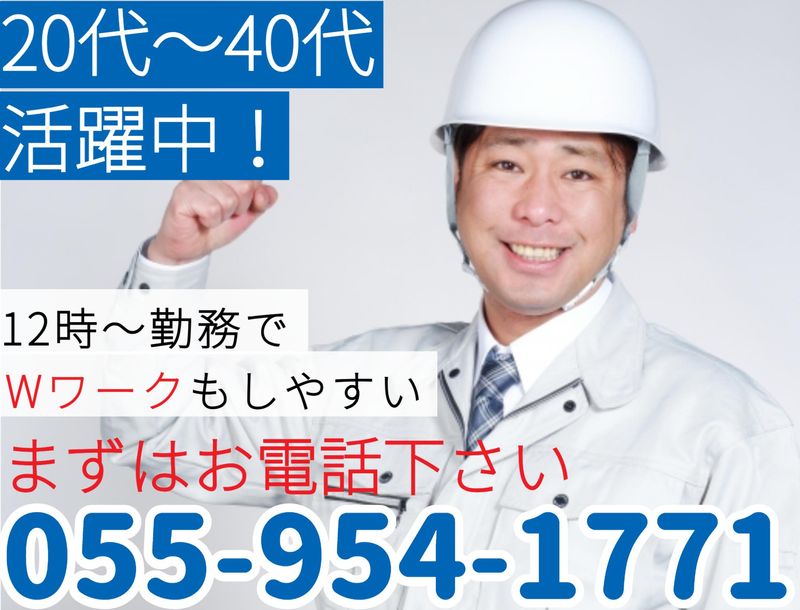 仕事内容 「生活リズムを崩さない“固定日勤”」 朝も夜もムリしない、 12:00〜20:00の安定リフト業務! ・夜勤ほど体に負担をかけたくない ・でも朝6〜7時出勤は正直つらい そんな“間の層”にちょうどいい時間帯✨ 実働7時間でも時給1500円で安心。 「夜勤は避けたい」 「でも収入は落としたくない」 そんな方に選ばれている働き方です! =================== ⭐ ご応募お待ちしております ⭐ 電話1本で応募完了【055-954-1771】 WEBからは24時間応募受付中です✨ 面接は簡単な内容ですので 緊張せずお気軽にご参加ください♪ =================== ■■■■■■■■■■■■■■■■■■■ 【おしごと内容】 大手宅配業者の物流センターで フォークリフト作業をおまかせします。 ✅入出荷時の荷積み・荷降ろし (主にパレット単位) ✅倉庫内での商品移動や仕分け業務 ✅ピッキング済み商品の運搬 ✅日常点検・整理整頓 丁寧な安全教育があるので、 運転にブランクがある方も安心◎ ――――――――――――――――――― 【ここがポイント】 午後から勤務なので、朝はゆっくりしたい方 平日に用事を済ませたい方に最適です! 実働7時間でも高時給1500円で、 安定収入とプライベートの両立が叶います。 ブランクOK、経験を活かして 無理なく続けられる環境です◎ ――――――――――――――――――― 大手物流センターで、 しっかり稼げる安定ワーク。 20〜50代男性が活躍しています! 「こんな働き方はできる?」など 質問だけでもお気軽にどうぞ✨ ―――――――――――――――――――