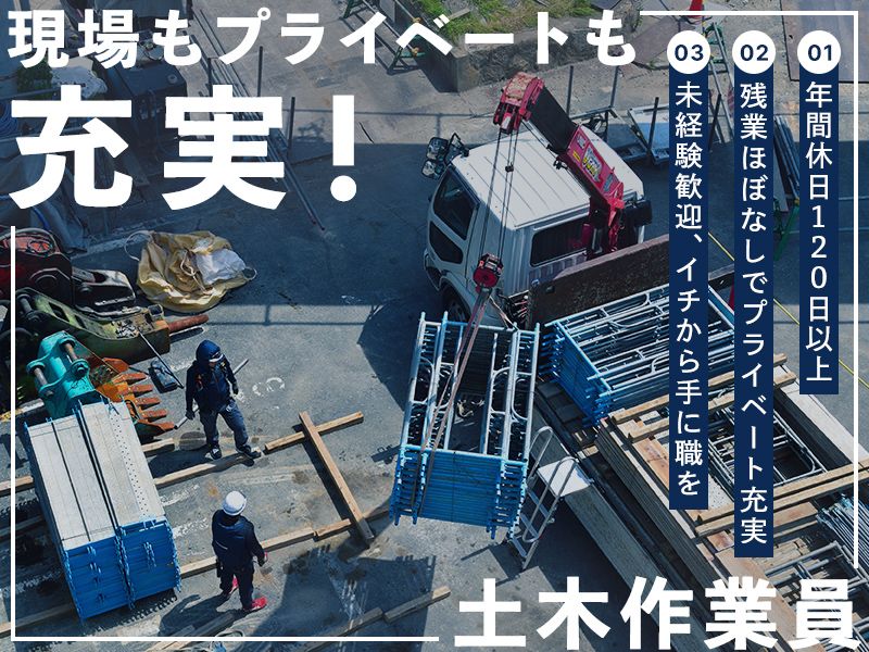 必要資格・経験 <必須> \必須条件は特にありません/ <歓迎> ・普通自動車(中型以上)(MT) ・移動式クレーン運転免許 ・玉掛け技能講習修了者 ・車両系建設機械運転技能講習修了 ・締固め用機械運転者 ・振動工具取扱作業者安全衛生教育修了 ※18歳未満の方は22時までの勤務となります。
