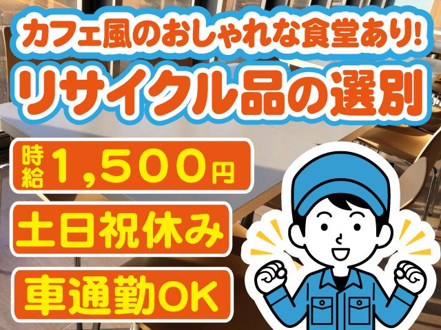 仕事内容 【おすすめポイント】 ・入社祝い金あり ・時給1,500円 しっかり稼げる ・日払いOK、週払いOK ・土日祝休み ・お盆休み・年末年始など長期休暇も充実 ・日勤(8:00~17:00勤務) ・残業ほぼなし ・マイカー通勤OK(無料駐車場完備) ・お友達、お知り合い同士の応募も大歓迎 ・面接は来社不要、電話やWEBで行えます ・履歴書不要 【職場環境】 きれいな施設で行う仕分け作業。 休憩スペース、設備が充実していて快適に働けます。 ・仮眠室・シャワー室完備 ・カフェ風のおしゃれな食堂あり ・作業場近くにも休憩室があり、小休憩もしっかりとれる ・防塵マスクや制服、靴など貸与 ・冬用のジャンパー貸与 ・夏場は空調ベスト貸与 【お仕事内容】 未経験・無資格で働ける仕分け作業スタッフ 作業場に運搬されてきたリサイクル品の選別作業 業界未経験、業種未経験の方大歓迎 もちろん下記のような経験のある方は、資格やスキルを活かして働けます。 ・工場での重機作業経験 ・機械の修理や維持管理の経験 ・カウンターフォーク運転 土日祝休みで日勤固定 適度に体を動かして働けます。 20代、30代、40代、ミドル世代の方など幅広く長期で活躍できる現場 【コーディネーターのおすすめポイント】 スタッフさんが優しいです! お休みもしっかり取れるのでメリハリつけて働きやすいところも続きやすいポイントかなと思います! 安全講習や研修なども充実しています! お仕事内容も難しいものではなく慣れたらコツコツこなせるタイプの業務ばかりです! 【GWJが"ぴったりのお仕事"探しを応援】 GoodWorkJapan/グッドワークジャパンは「人に合う仕事探し」を大切に、 ・日払い対応 ・Web面接 で スムーズな就業・転職をサポートします。 面談後は職場見学で実際の雰囲気を確認できるので安心です。 まずは登録から!あなたのご希望をお聞かせください! ここまでご覧いただきありがとうございます。 興味を持っていただけた方はお気軽にご連絡ください。
