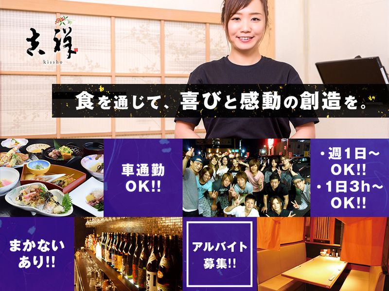 仕事の内容 *★Newメンバー大募集★* ☆……・・・・・・・・・・・・‥…☆ ●週1日、1日3hから勤務OK! ●髪型髪色・ピアス・髭OK ●未経験者大歓迎! ●友だちとの応募もOK! ●副業・WワークOK! ☆……・・・・・・・・・・・・‥…☆ スタッフ同士とっても仲良しで、定着率バツグン! 【仕事内容】 ホールでのお仕事をお任せします! 具体的には・・・ *お客様のご案内 *オーダー取り *料理のご提供 *お会計 など 【 まずは基本の挨拶から 】 挨拶もおもてなしの一つです♪ 笑顔で真心こめてご挨拶すれば 必ずお客様へ伝わります! <話かけやすい!質問しやすいスタッフばかり> 難しいことはありません 先輩Staffがしっかりフォロー。 あなたのペースに合わせて、丁寧にお教えします。 最初は簡単な業務から始め、 徐々に難しいものにステップアップ♪ 必要な接客・調理は細かく マニュアルになっているため、 飲食店でのアルバイトが初めての方や、 バイトデビューさんも安心です★ ☆゚・‥…━━━━━━━━━━━━━━━━━━━ 【給与例】 ▼ガッツリ稼ぎたい学生さん ・時給1100円×1日4h×月15日勤務 月給6万6000円! ▼長期休みの間に貯金したい主婦(夫)さん ・時給1100円×1日5h×月20日勤務 月給11万円! ▼夢追いフリーターさん ・時給1100円×1日6h×月20日勤務 月給13万2000円! ・‥…━━━━━━━━━━━━━━━━━━+.☆゚