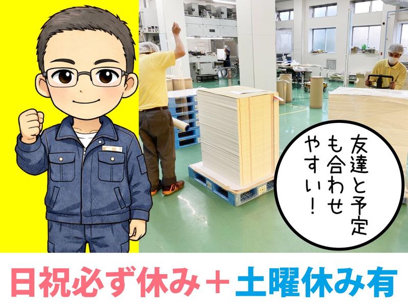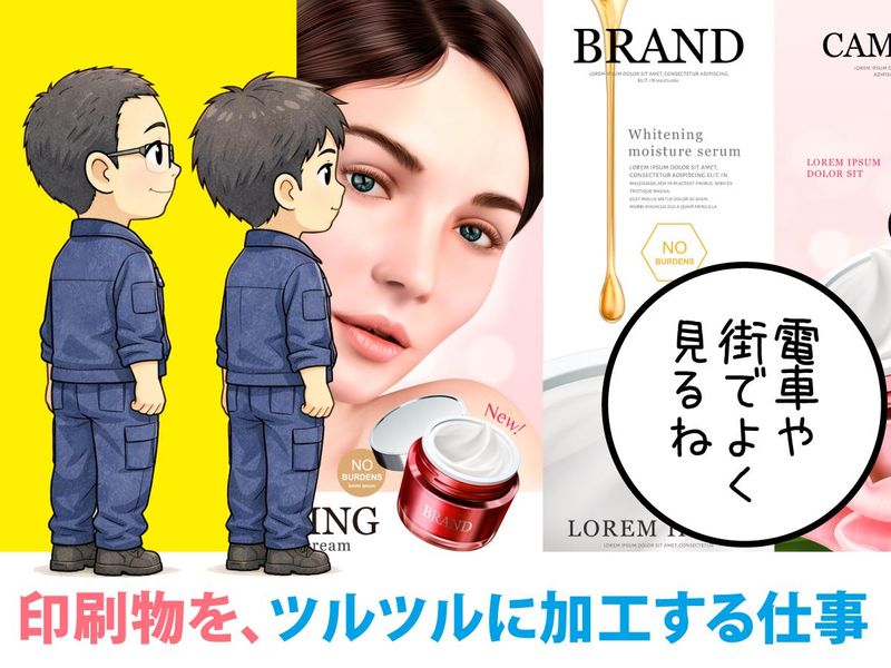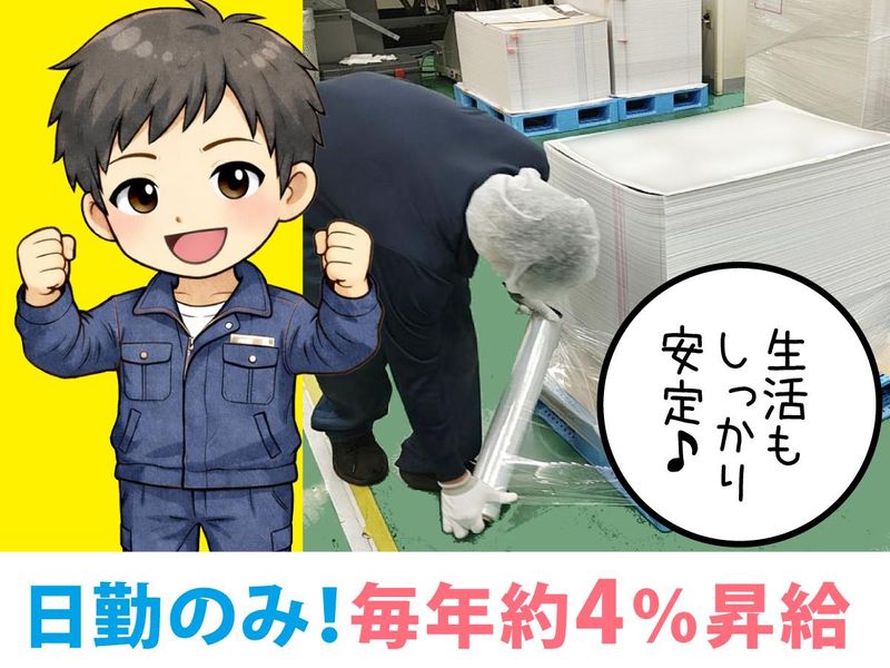 仕事内容 \もくもく簡単ワークで正社員に♪/ 接客なし×冷暖房完備×未経験大歓迎! 印刷物とフィルムを機械でペタっと 貼り付ける、コツコツ黙々作業です♪ ▼▼▼ ◎力仕事があるため、男性多数活躍中◎ ❖1年目月収29万・2年目は30万円超え❖ ―・―・―・―・―・―・―・―・―・―・―・―・ 正社員だからって特別なスキルは不要♪ 毎年平均4%昇給&残業時は食事手当も◎ 10年先も20年先も、コツコツ黙々と 穏やかに働ける人生が手に入る♪ 「履歴書に書けることがほぼ無い」 「どの求人も自分には無理そうと感じる」 「面接でうまく話せない自分が嫌だ」 という方はぜひ最後までご覧ください。 ─────────────────── ………⭐POINTをサクっと紹介⭐……… ─────────────────── ✅安心の日勤のみ!夜勤はありません ✅日祝は必ず休み+土曜もお休みあり ✅未経験×簡単作業で月給24万スタート ✅毎年平均4%昇給+賞与も毎年支給◎ ▶1年目月収例/29万円(残業手当込み) ▶2年目月収例/30万5千円(残業手当込み) ✅残業食事手当800円も支給 ▶残業時間は月平均27時間程度 ✅冷暖房完備の快適な工場 ※応募者多数の場合、募集を締め切る 場合があります。お早めにご応募下さい。 ────────────────── ………⭐お仕事内容について⭐……… ────────────────── 印刷物にラミネート加工を行うお仕事。 超簡単に言うと…紙やシールに “ピカピカのフィルム”を貼るイメージ! ▼▼▼ つくるものは、電車や本屋でよく見かける 「光沢感のある広告や雑誌」です♪ …<仕事内容は大きく分けて3つ>… ①材料の運搬とセット ────────────────── ▨紙やフィルムを台車で機械へ運ぶ ▨機械に材料をセットする ▶機械の操作はボタンを押すだけ◎ ②貼り合わせ作業 ────────────────── ▨フィルムと紙が機械でペタっと貼られる ▨機械から出てきた紙をパレットに積む ▶手先の器用さや専門技術は必要なし! ③片付けと掃除 ────────────────── ▨作業後の機械を軽く清掃する ▶慣れれば1人でもスイスイ作業できます♪ ────────────────── ………⭐お給料事情について⭐……… ────────────────── 「社内でのアピール」よりも「コツコツ継続」 が評価される制度です。 社員の年次昇給額は平均4%。 賞与は2ヶ月分(3年目以降)支給されるので 安心して長く働けますよ♪ ―・―・―・―・―・―・―・―・―・―・―・―・―・ ▨1年目月収例29万円(月給24万+手当) ▨2年目月収例30万5千円(月給25万+手当) ―・―・―・―・―・―・―・―・―・―・―・―・―・ 残業食事手当800円や、資格取得支援制度が あるのも嬉しいPOINTですね。 ┏━━━━━━━━━━━━┓ ❖三栄産業ってこんな会社 ┗━━━━━━━━━━━━┛ 昭和52年に創業し、安定経営を続ける 野田市の隠れた実力派企業。 シールやおもちゃ、印刷物全般の 光沢加工ラミネートに強みを持つ コツコツ派の会社です。