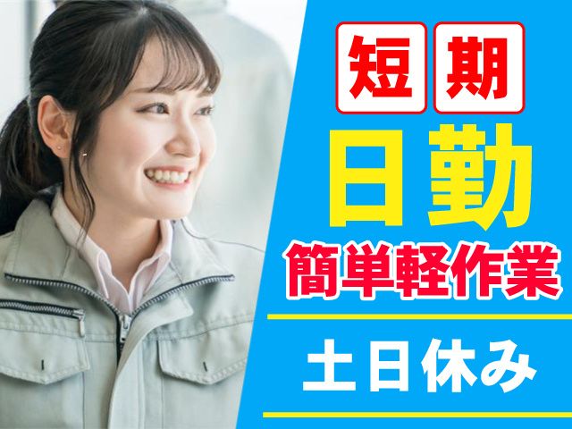 仕事内容 ≪11月末までの短期募集≫ 日光市内にある工場で カンタンな組立て・ピッキング作業を お願いします!! \日勤・土日祝休み・空調完備/ 資格・経験不問!週払い制度もあります! 交通費別途支給・即勤務OK ≪20代~50代の女性活躍中!≫ 出張登録いたします! お気軽にご相談ください! ━━━━━━━━━━━━━━━━━ 【アピールポイント】 ≪働き方について≫ 日勤のみ!土日休みで 週末しっかりリフレッシュ! GW、お盆の大型連休もありますので プライベートも充実できます。 ※残業は任意ですので、しなくてもOK! - ≪未経験OK≫ 未経験でも丁寧な指導がありますので 安心して始められます!! 難しい作業はありません。 - ≪入社日応相談≫ 在職中の方も、面接日や入社日は 柔軟に対応させて頂きます。 お気軽にご相談ください。 ━━━━━━━━━━━━━━━━━ 【具体的な仕事内容】 工場内での軽作業 (組立てやピッキング作業) 重たいものを持ち上げることや ライン作業はありません。 ※とても簡単な作業です! ━━━━━━━━━━━━━━━━━ 【ひとことキーワード】 長期/工場内作業/高時給/交通費支給 日勤/ものつくり/即勤務OK/組立て 社会保険完備/有給あり/稼げる/週休2日 土日休み/長期休暇あり/製造/軽作業 平日のみ/冷暖房完備/空調あり/簡単作業