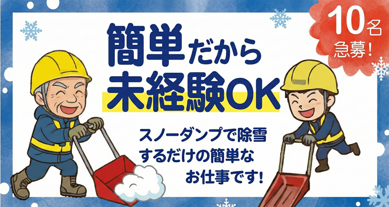 急募!!短期募集!スノーダンプで除雪するだけの簡単なお仕事!