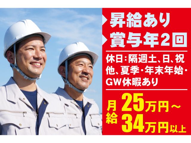 月給25万円~34.5万円/日勤・週休2日/賞与年2回/昇給あり/正社員/現場は官公庁関係がメイン