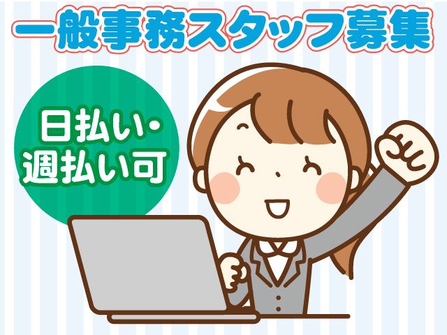 仕事内容 人気の事務スタッフ募集! 幅広い年代が活躍中! 日払い・週払いOK うれしい日勤 残業なし 16:00までの勤務OK! 【お仕事内容】 伝票作成・発注書の作成業務をお任せします <具体的には…> 1.発注書を見ながら、納品書を作成し倉庫に指示を出す 2.送り状や納品書の作成を行う 3.電話対応も行います 4.取引先のコードや、商品のコードは番号を入力すれば自動的にシステムに反映 5.特売をする店舗等あるので、その際は手打ちで金額修正 システムが入っているので、コードさえ覚えれば問題なし! 難しい作業はないので、比較的に覚えることは楽チン 【月収例】 198,450円 【1,350円(時給)×7(時間)×21(出勤日数)】 「ブランクがあるけど、 アルバイト・パートの経験や 事務経験を活かして働きたい」 「地元で仕事を探している」 「データ入力や書類整理が得意」 「新しいことにチャレンジしたい」 など 志望動機はなんでもOKです! WEBでの面接も可能ですのでお気軽にご応募ください。