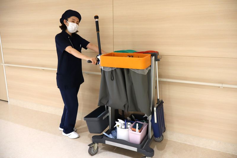 北里大学病院内の清掃スタッフ