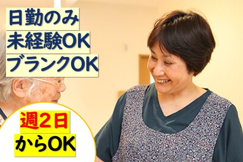 【アピールポイント】 住宅型有料老人ホームでの介護職員募集! ?週2日からOK ?ブランクOK ?日勤のみ ?昼食補助や資格取得支援制度など、福利厚生充実!