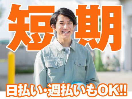【保険制度】 雇用保険、労災保険、健康保険、厚生年金 待遇・福利厚生 【福利厚生】 ■ 日払い・週払いも可(規定あり) ■ 履歴書不要 ■ 交通費規定内支給 ■ 社会保険完備(法令に則り適用) □ 無料送迎バスあり □ 休憩室利用OK □ 仕出し弁当利用可 □ 喫煙専用スペースあり