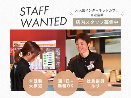 【週1日~勤務OK&シフト相談可】未経験からでも安心☆履歴書不要☆漫画やネットが楽しめる席が半額☆