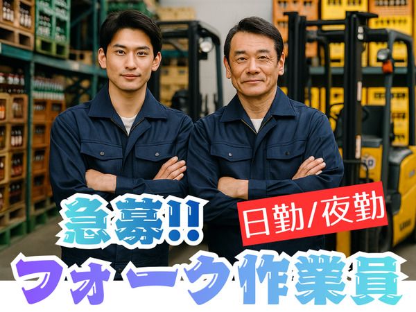 仕事内容 ★手作業少なめ!カウンターフォーク作業★ ●飲料物を扱う庫内でのカウンターフォーク作業● ほぼのりっぱなし業務となる為、 今までの経験を存分に活かす事が出来る現場です! 【作業割合】 ☆フォークリフト作業8割 ☆検品・在庫のカウント等の手元作業2割 :+:・-・:+:・-・:+:・-・:+:・-・:+:・-・:+: ●日勤帯業務 日勤帯での業務は主に商品の積込み・格納業務がメインとなります。 メーカーより届く商品を庫内に格納していただき、 空のトラックが来た際には該当する車番にあった、 商品を積み込んでいっていただく業務となります。 基本は箱単位での扱いとなります。 :+:・-・:+:・-・:+:・-・:+:・-・:+:・-・:+: ●中番帯業務 中番帯での業務は積込みと夕方以降から 翌日に積み込む商品のピッキング業務がメインとなります。 朝方に配送を終えて戻ってきた車両に再度、商品を積み込んでいただき、 夕方以降は翌日の注文リストが出てくる為、 それを元に出荷する商品を集めていただく業務となります。 :+:・-・:+:・-・:+:・-・:+:・-・:+:・-・:+: ●夜勤帯業務 夜勤帯での業務は翌日出荷する商品の用意がメインとなります。 フォークリフトにて空のパレットを用意し、 リストに記載のある商品を集めて出荷する 荷物を集めていただく業務となります。 それが終了した際には在庫のカウントを行い、 誤出荷を防止する為の業務もございます。 :+:・-・:+:・-・:+:・-・:+:・-・:+:・-・:+: